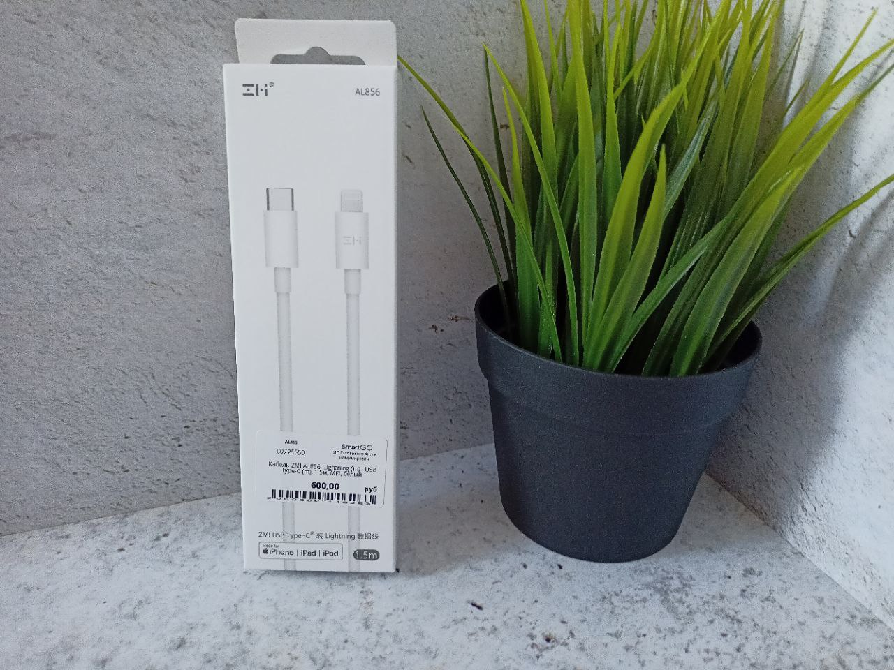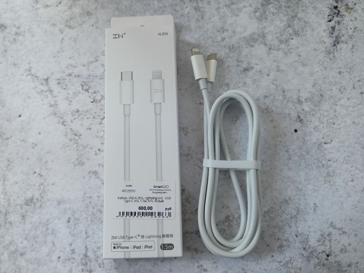 Кабель ZMI AL856, Lightning (m) - USB Type-C (m), 1.5м, MFI, белый