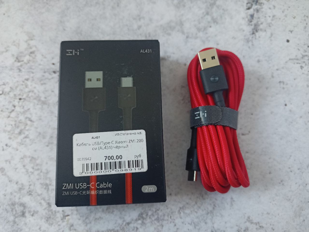 Кабель USB/Type-C Xiaomi ZMI 200 см 3A Материал оплетки нейлон/кевлар (AL431) красный