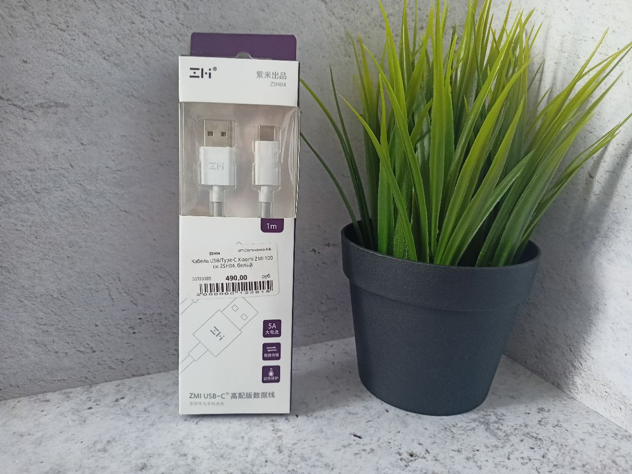 Кабель USB/Type-C Xiaomi ZMI 100 см Super Charge 5A 3A Материал оплетки TPE (ZSH04), белый