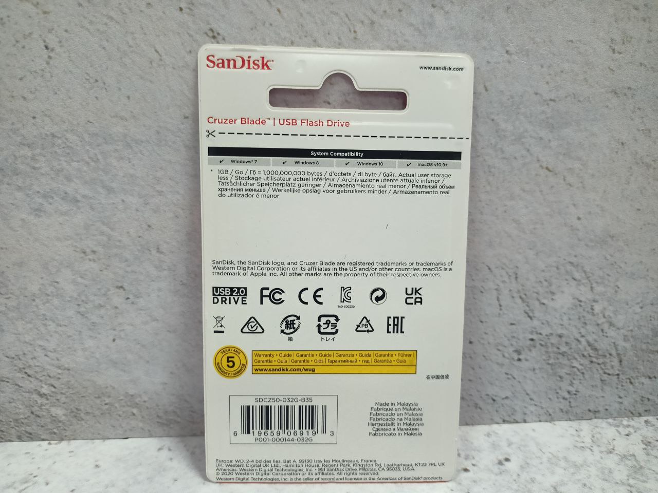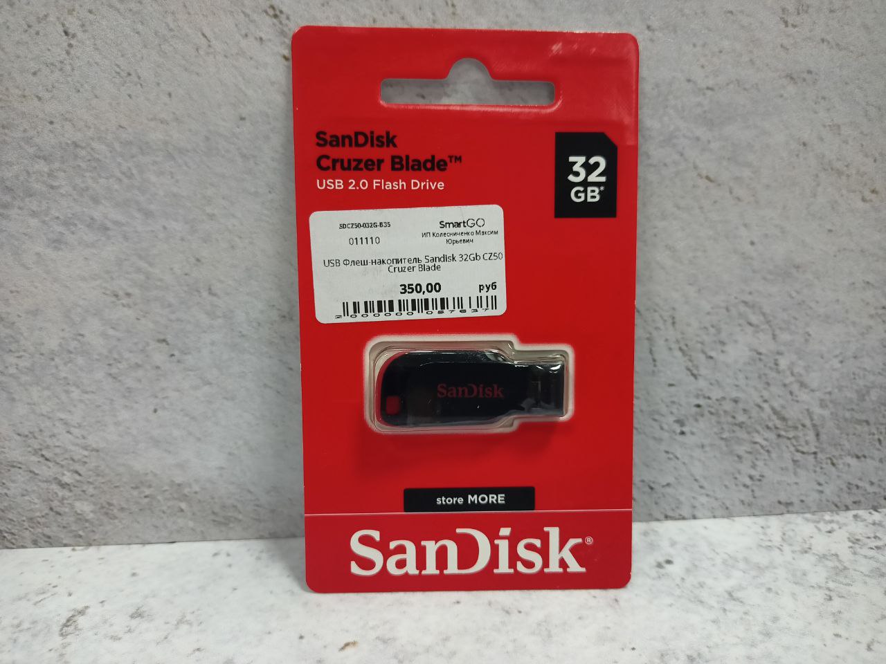 Конструкция лишена колпачка, что предполагает открытый тип разъема. Наличие специального отверстия в корпусе позволяет оснастить флеш-накопитель SanDisk Cruzer Blade шнурком и повесить его на «собачку» рюкзака, сумки или на связку ключей. Корпус изготовлен из сверхплотного пластика. Вместительность флешки равна 32 ГБ, что позволяет экспортировать и импортировать на сверхбыстрых скоростях большие объемы информации.